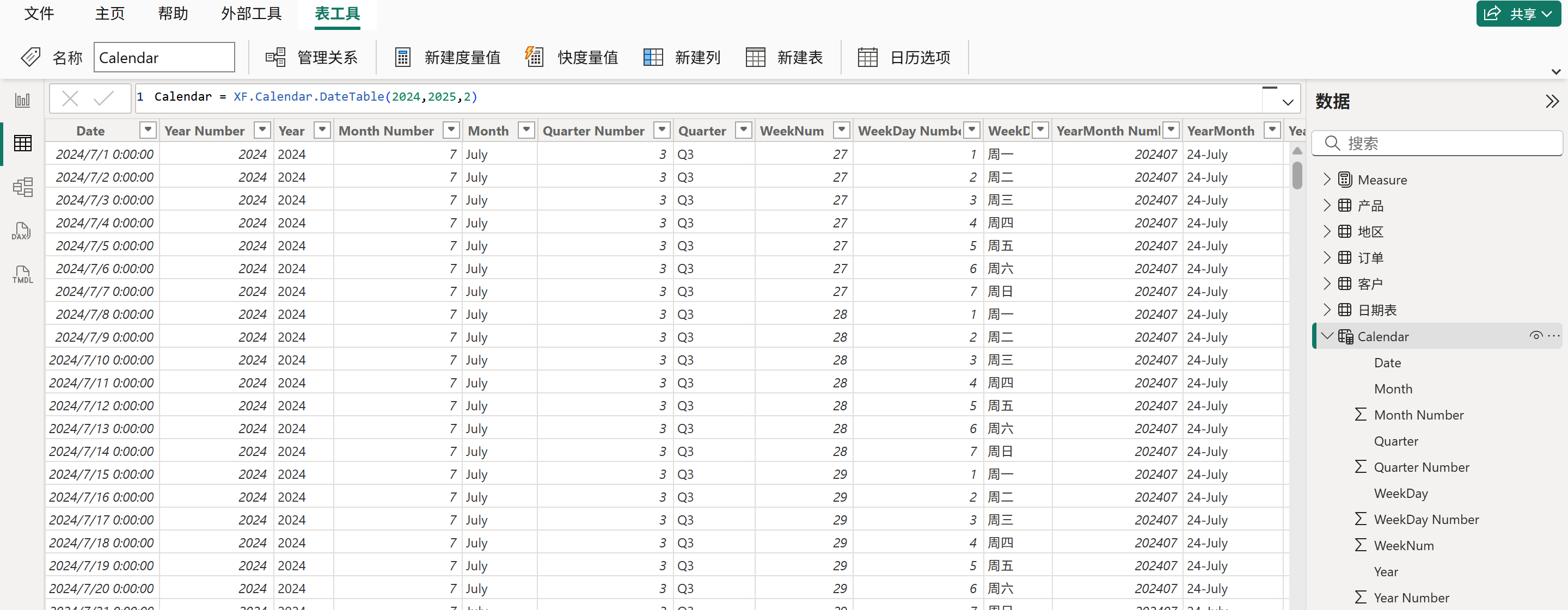 根据指定的起始年份与结束年份,生成一张能覆盖所有日期的标准日期表;StartDayOfWeek参数用于指定每周的第一天,1:周日,2:周一。