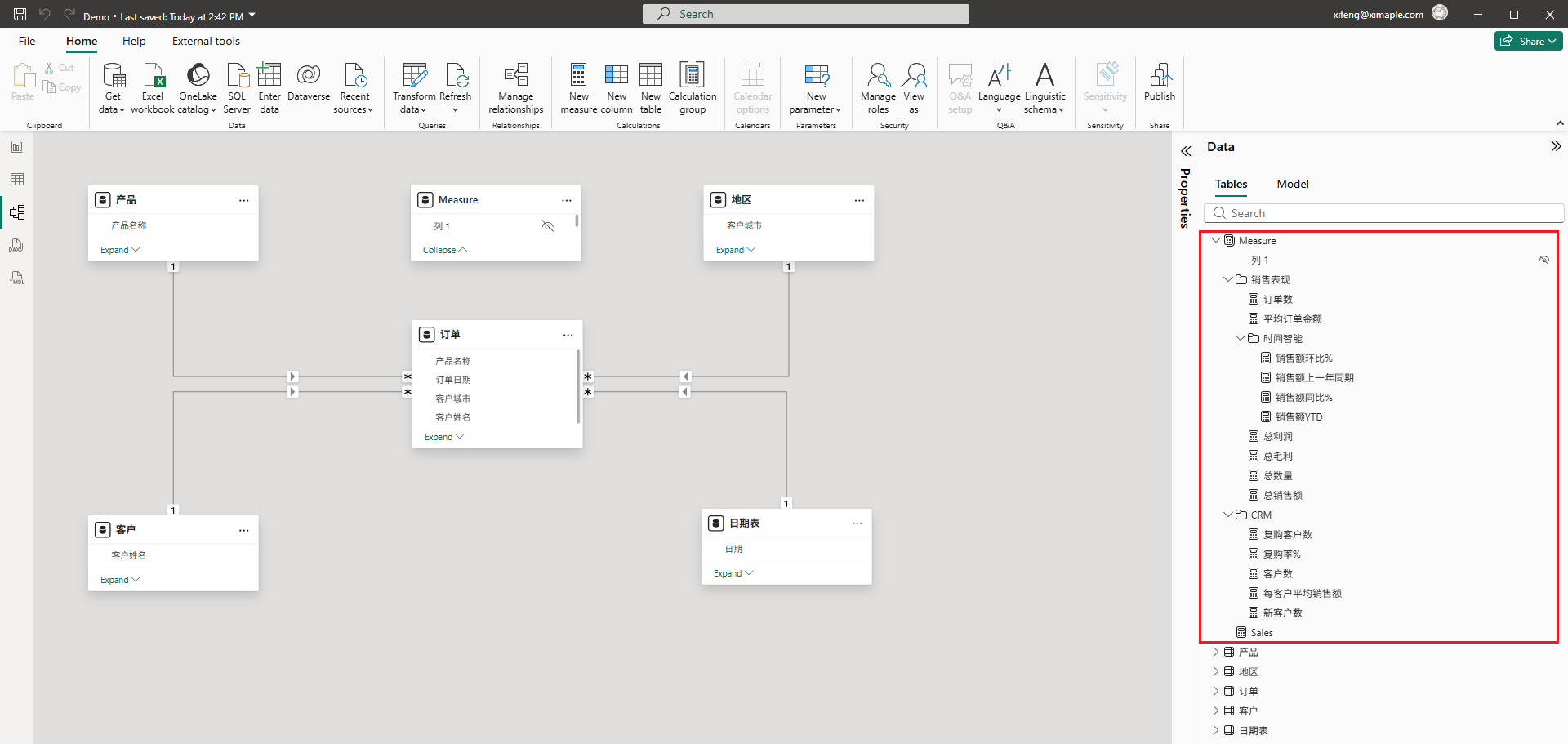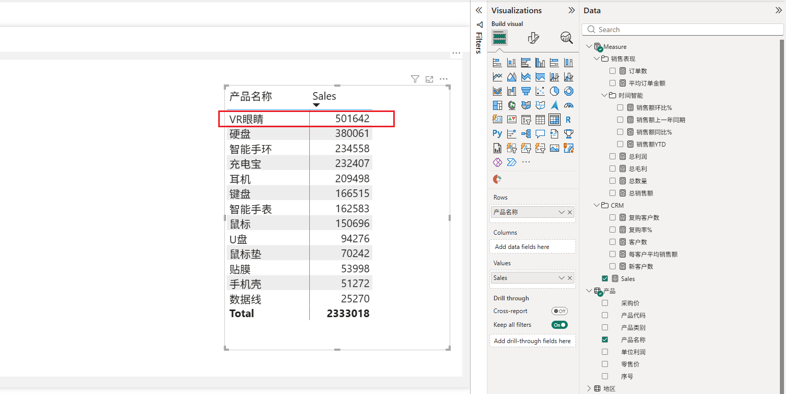 然后转到PowerBI,就可以看到AI所创建的度量值了,如下图所示: