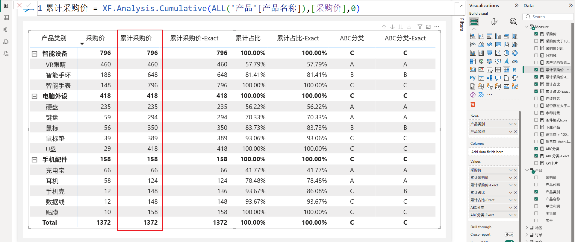 XF.Analysis.Cumulative(ALL('产品'[产品名称]),[采购价],0)