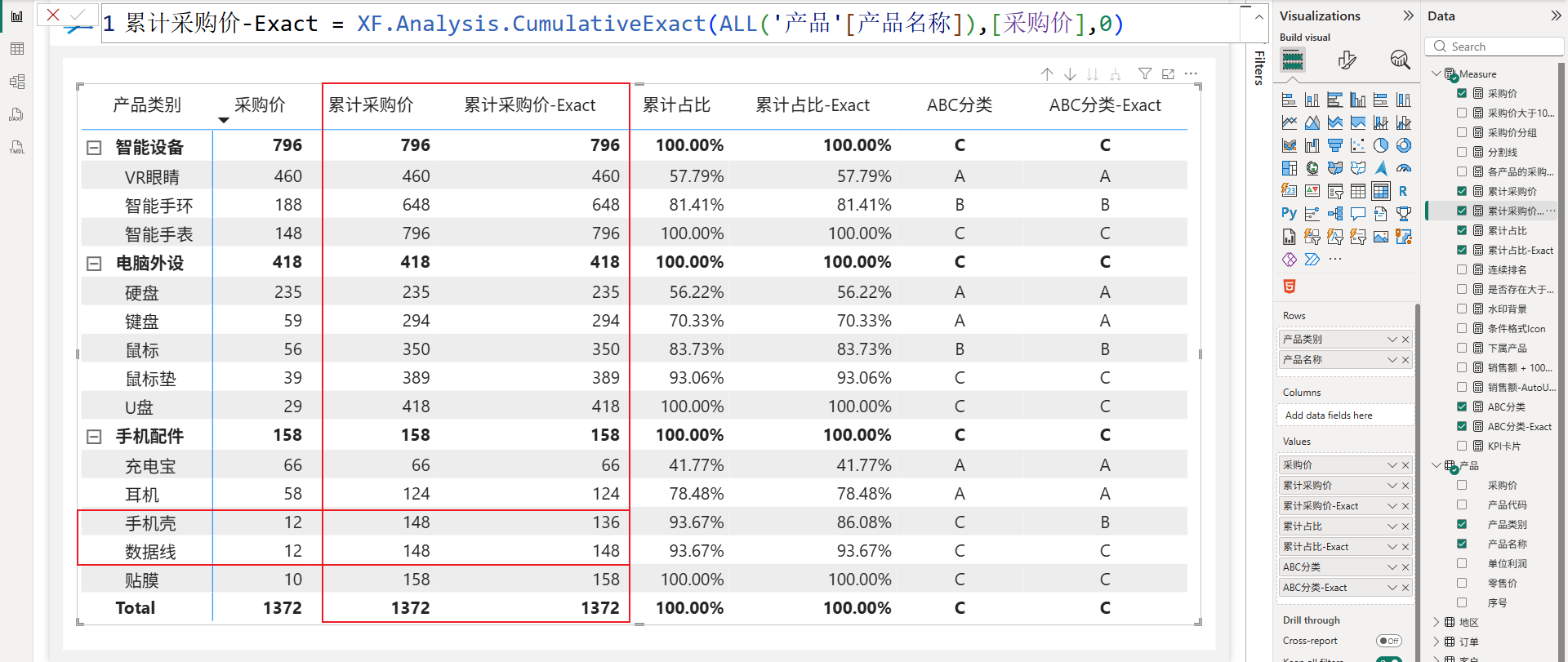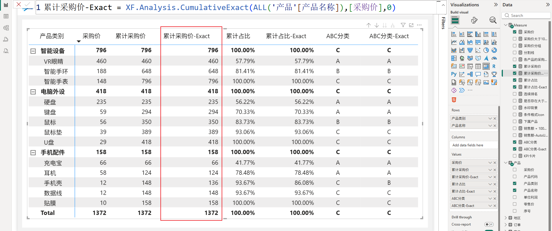 XF.Analysis.CumulativeExact(ALL('产品'[产品名称]),[采购价],0)