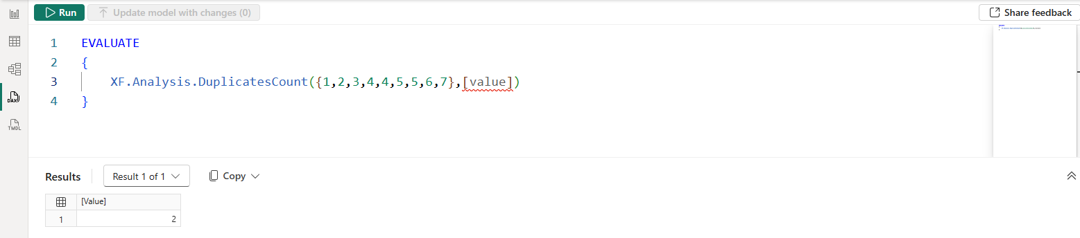 XF.Analysis.DuplicatesCount({1,2,3,4,4,5,5,6,7},[value])