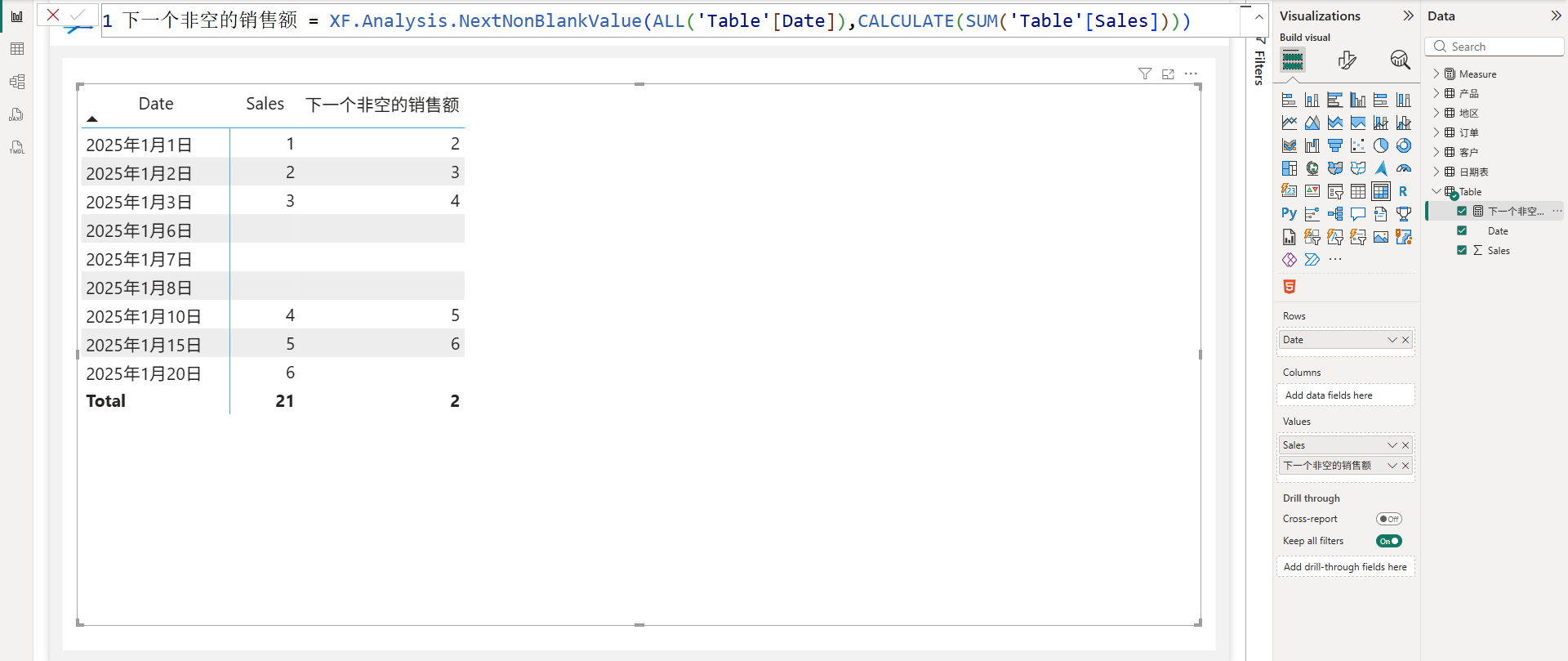 XF.Analysis.NextNonBlankValue(ALL('Table'[Date]),CALCULATE(SUM('Table'[Sales])))