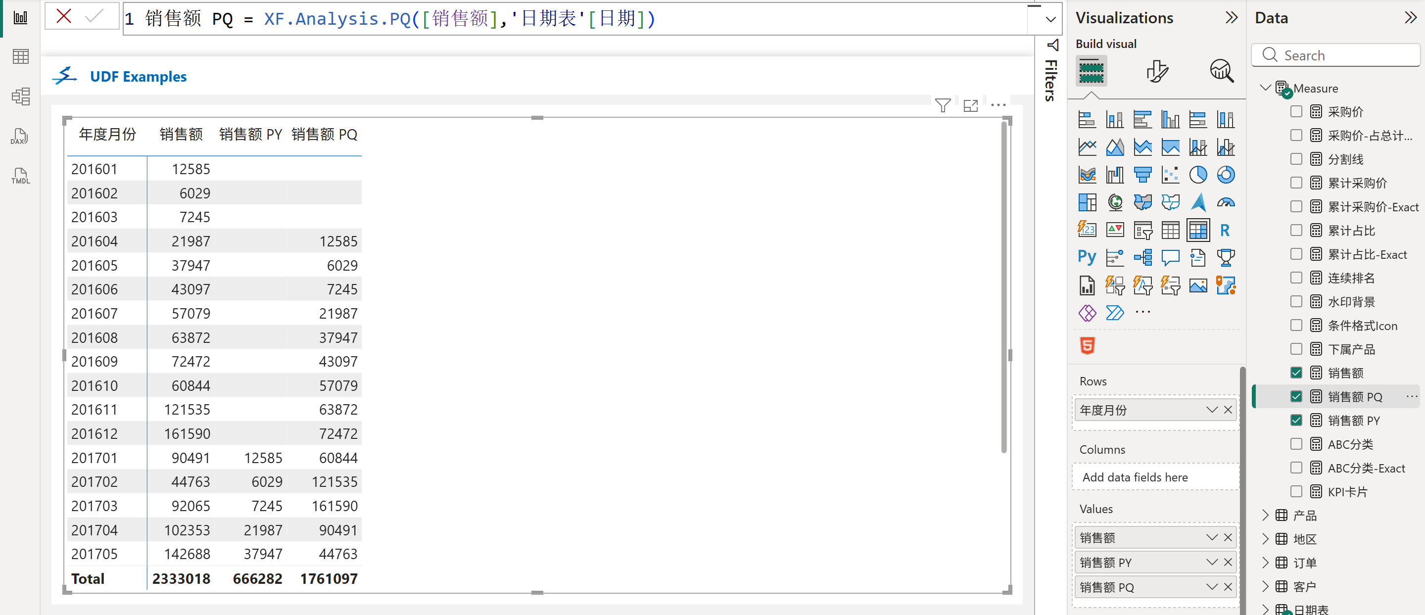 XF.Analysis.PQ([销售额],'日期表'[日期])