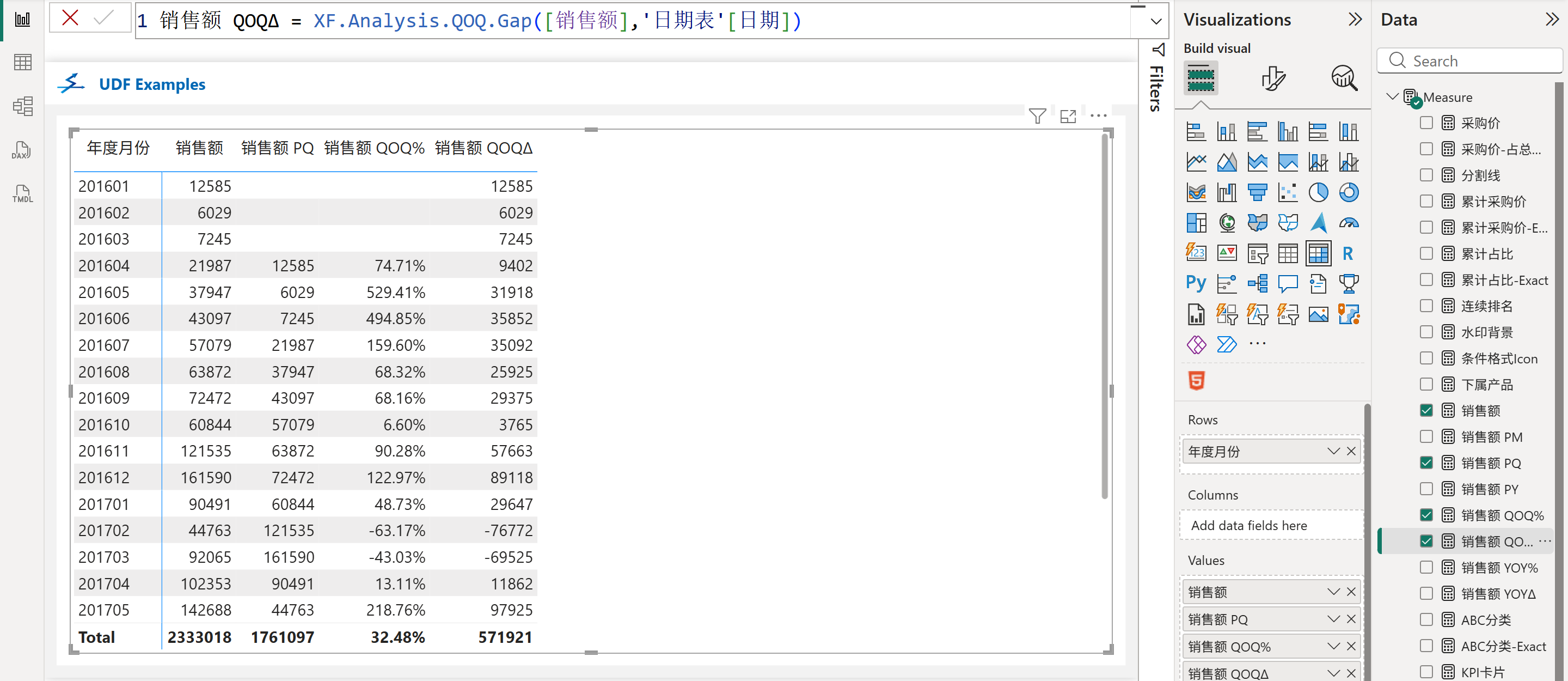 XF.Analysis.QOQ.Gap([销售额],'日期表'[日期])