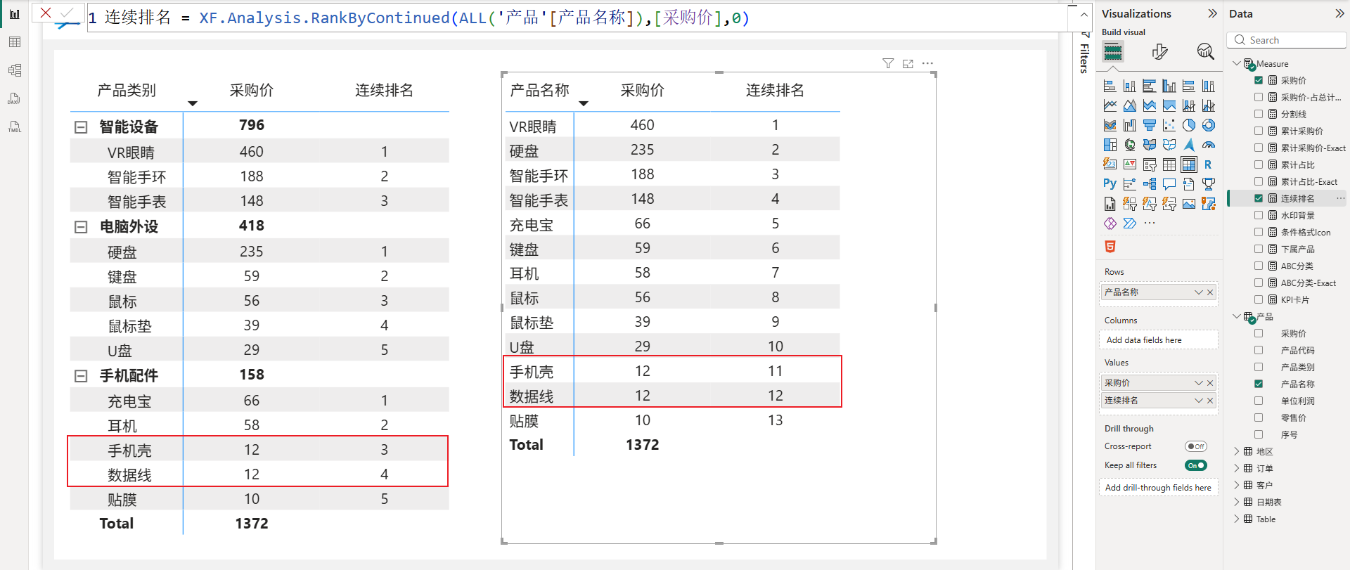 XF.Analysis.RankByContinued(ALL('产品'[产品名称]),[采购价],0)