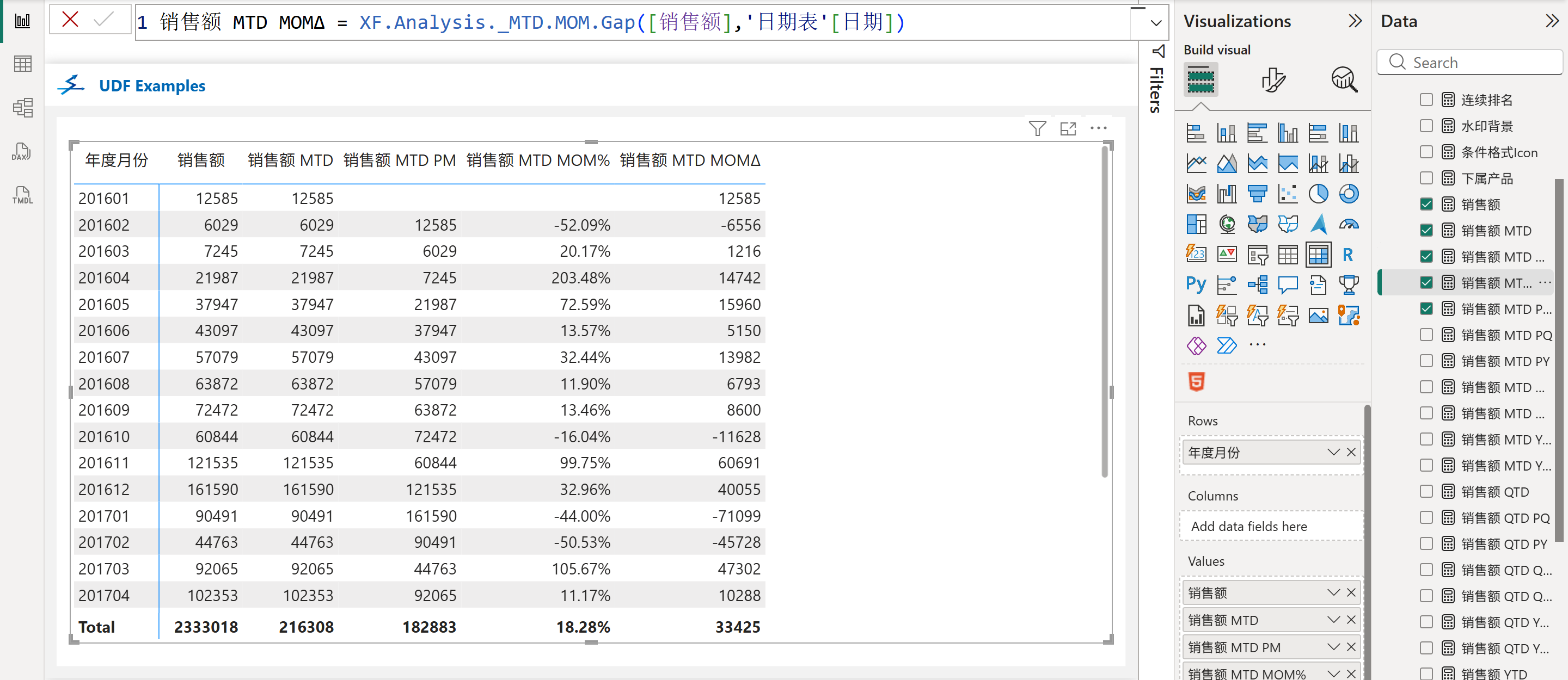 XF.Analysis._MTD.MOM.Gap([销售额],'日期表'[日期])