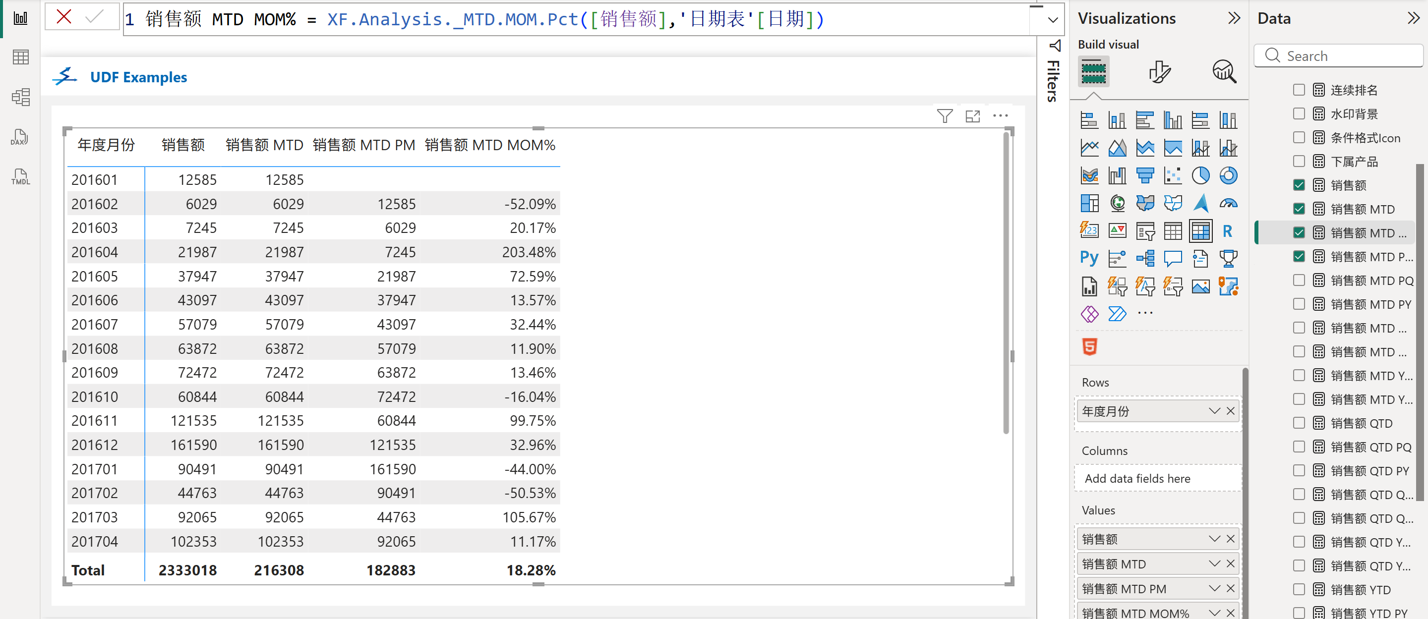 XF.Analysis._MTD.MOM.Pct([销售额],'日期表'[日期])