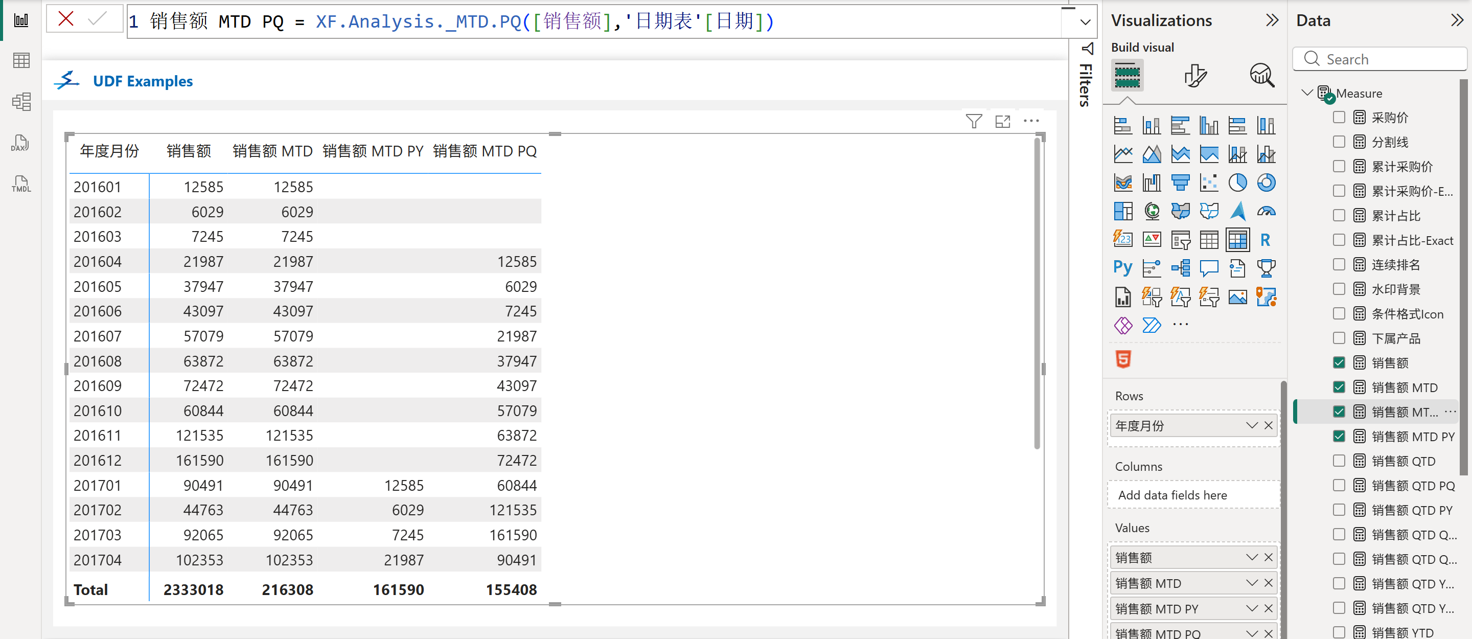 XF.Analysis._MTD.PQ([销售额],'日期表'[日期])