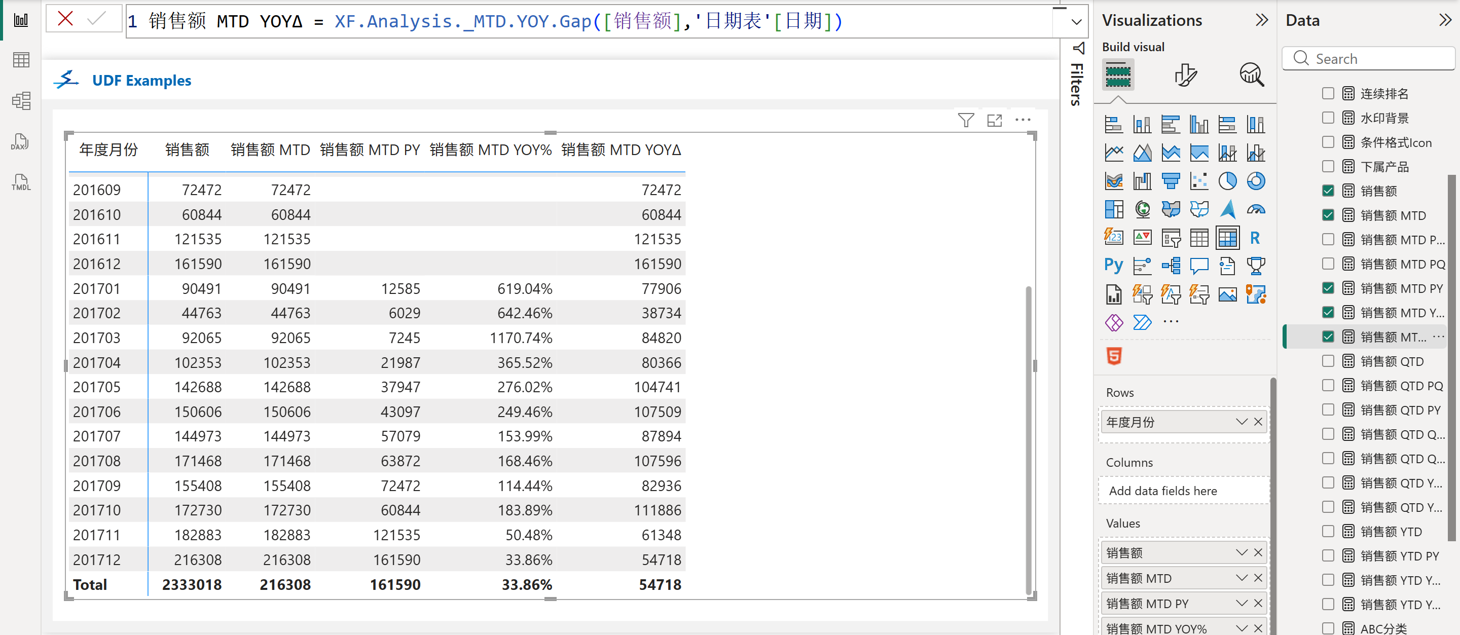 XF.Analysis._MTD.YOY.Gap([销售额],'日期表'[日期])