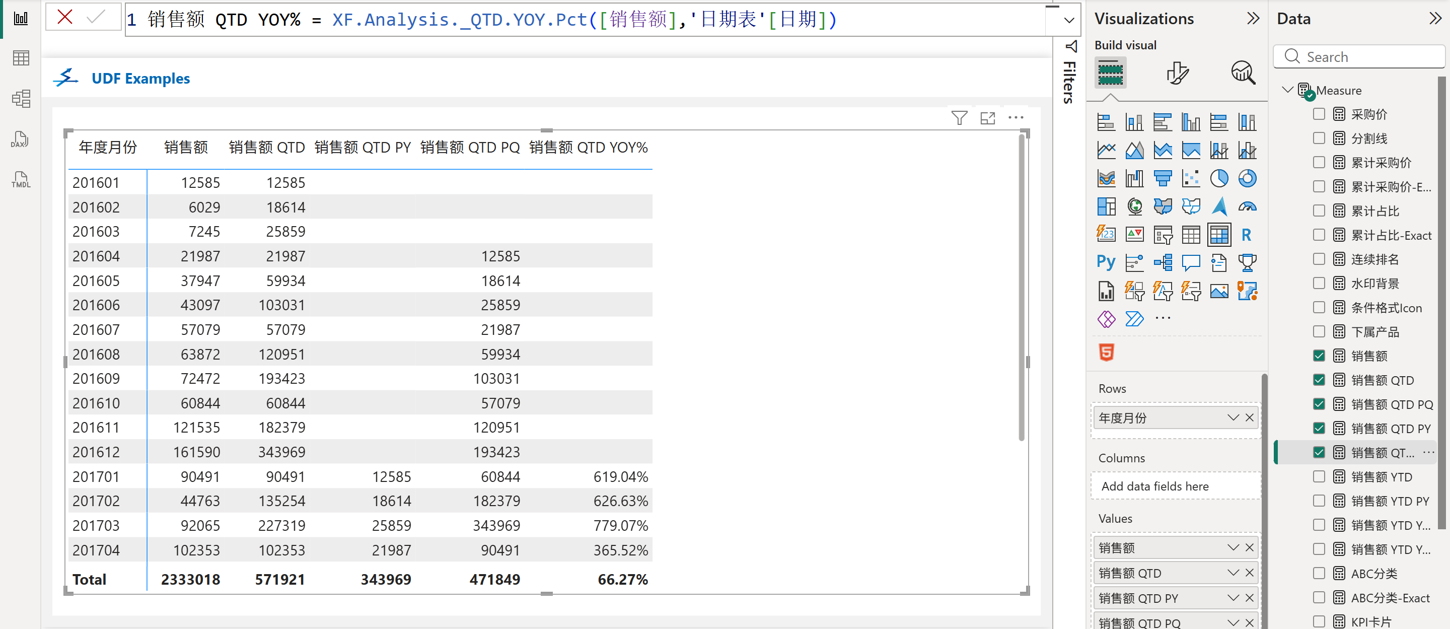 XF.Analysis._QTD.YOY.Pct([销售额],'日期表'[日期])