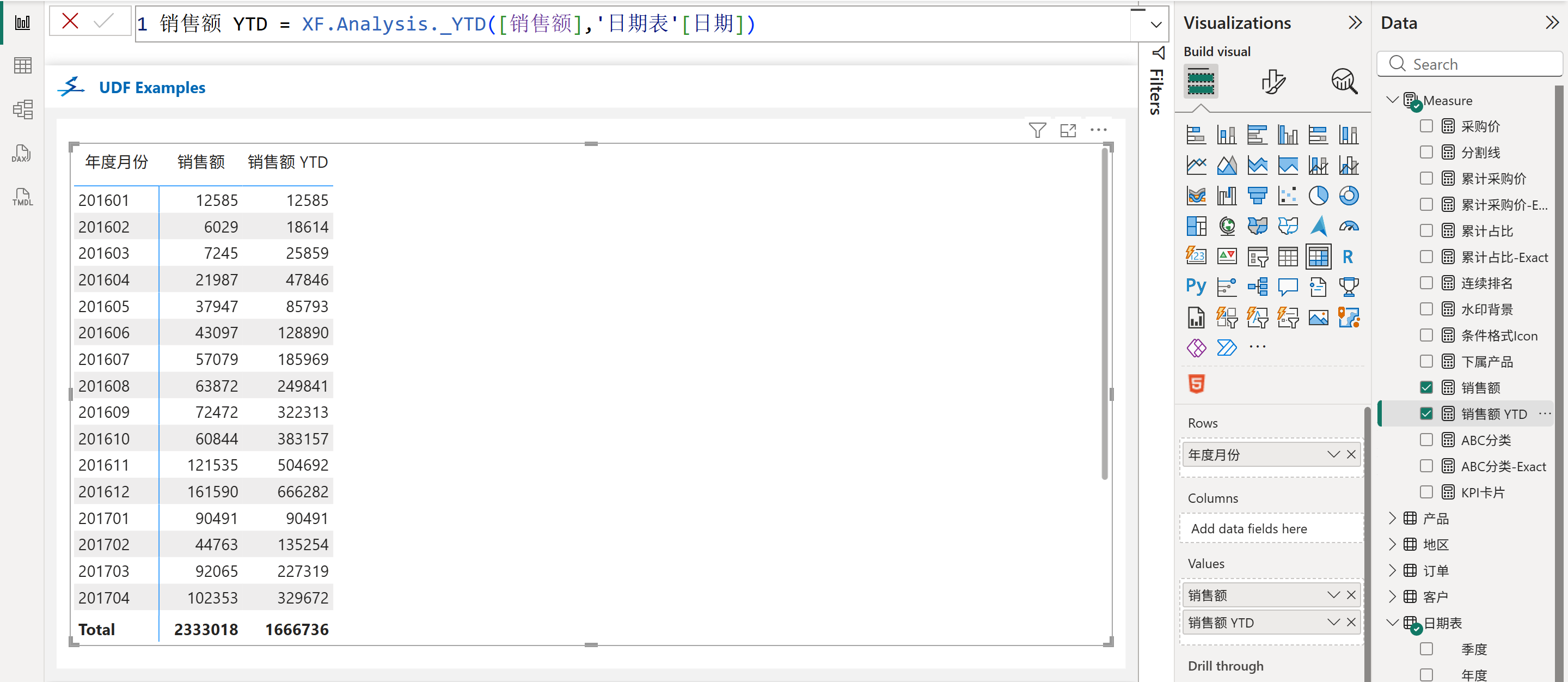 XF.Analysis._YTD([销售额],'日期表'[日期])